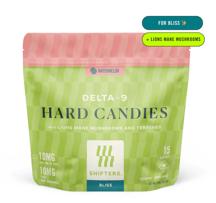 Watermelon Shifters Bliss Hard Candies with Delta-9 THC and Lions Mane Mushrooms